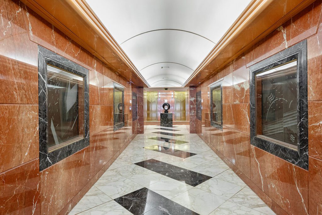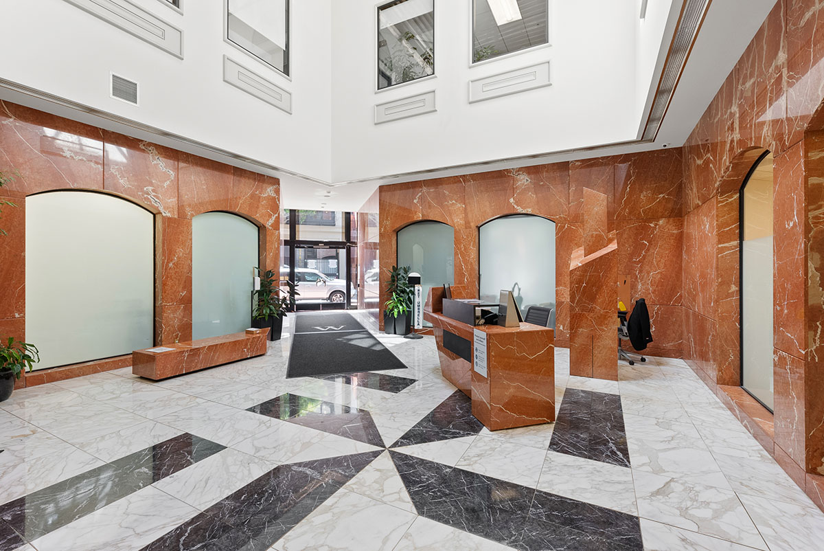 This elegant six-story structure with its traditional brick façade has been named the best office building in San Francisco’s Jackson Square. Featuring a neo-classic design and extensive marble, hand-laid brick, polished brass, carved glass, the building has a 25-foot entrance archway that opens to a sky-lit lobby and view of San Francisco Bay from terraces and roof.