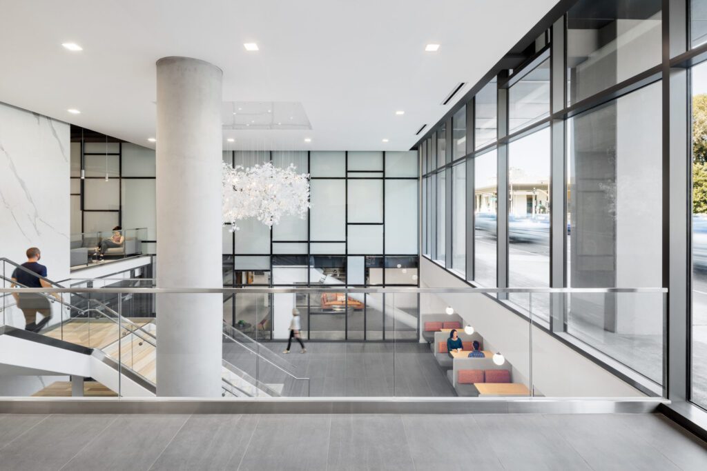An elegant glass and stone exterior replaced 520 South El Camino’s institutional façade, offering an abundance of natural light for an enhanced the tenant experience.